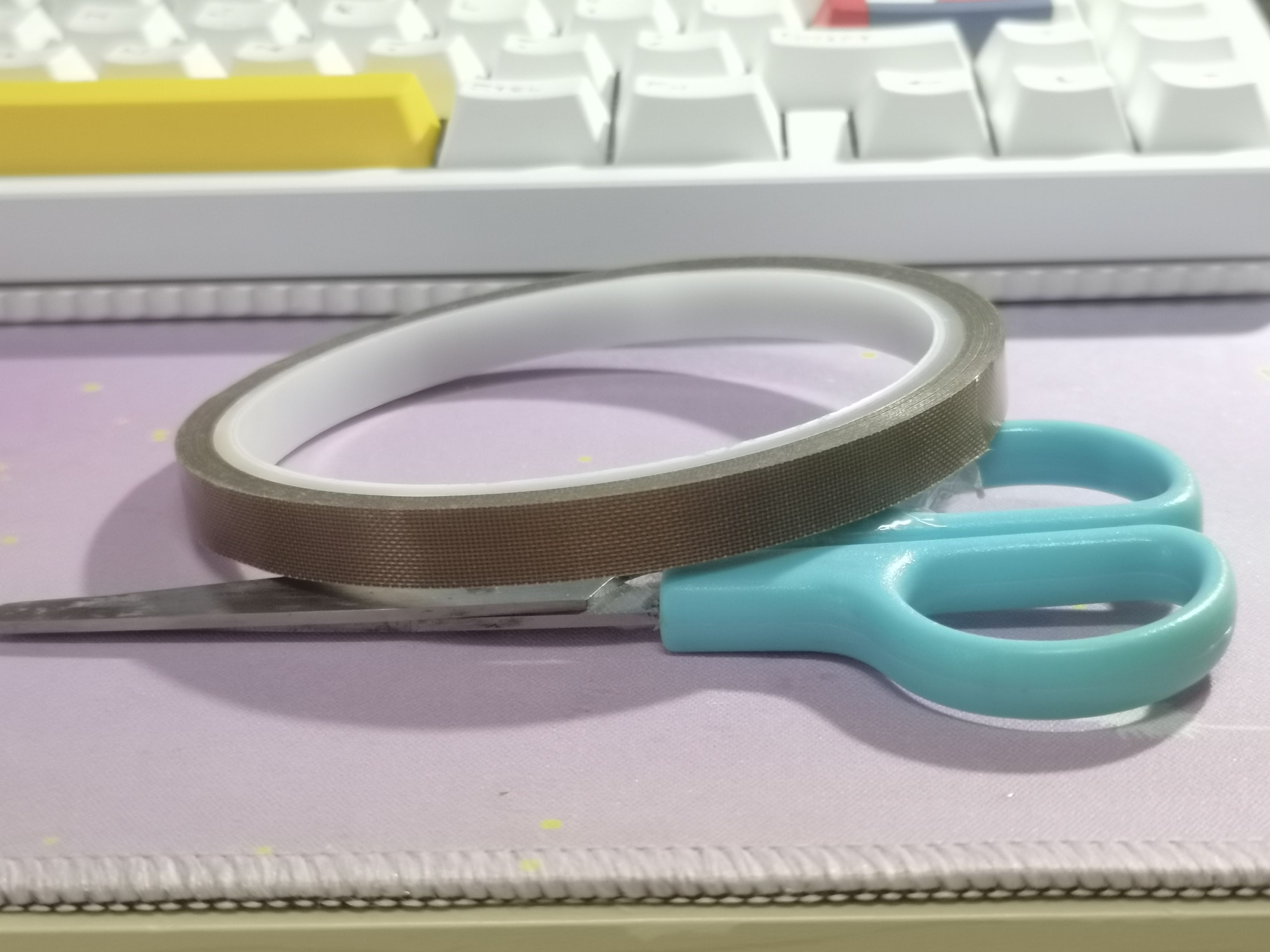 - 铁氟龙胶带和剪刀,铁氟龙胶带就买那种7mm宽的就够了,挺便宜的一卷,除了用在键盘上还可以用小刀裁细一点贴在手柄的摇杆上防磨。