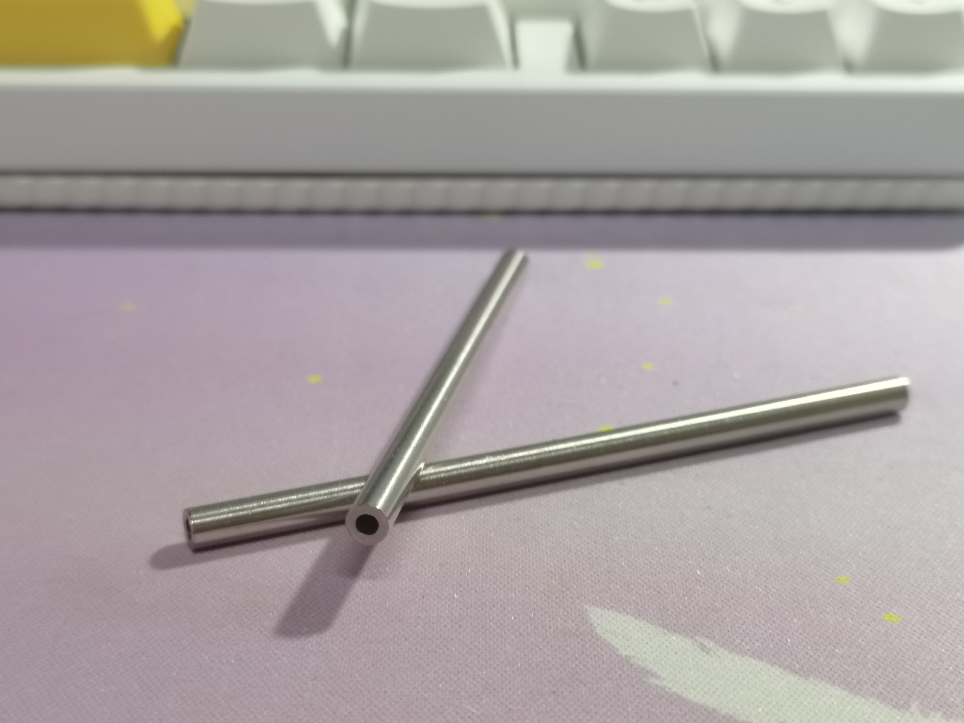 关于卫星轴的推荐,这玩意我也没有特地买过,单买的话我只买过光头的黑卫(当时甚至给我发的是风信子配色的那个,不是打广告啊,主要是当时便宜),其实现在不少量产都新开了卫星轴的模具,很多都不错,像是新的rk啊(老款的卫星轴不太行)vgn啊等等出厂自带的卫星轴以及其调,教都是不错的,能到手即用的一个程度,只要没有什么太过分的情况就没有必要再买一套新的,毕竟好一点的一套也要好几十呢,但是像钢丝上的润脂之类捏,用久了会挥发就容易出现有钢丝音啊之类的情况,包括如果经常拔键帽也会导致钢丝上的润脂被挤开,所以大概每隔一段时间就得润润大键。