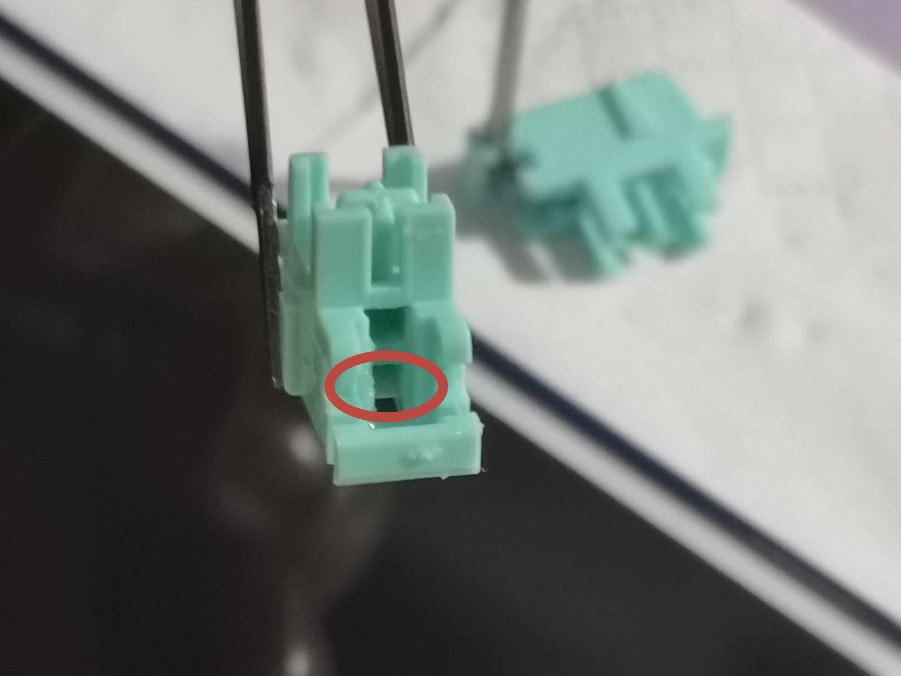 要调大键,第一步肯定是把键帽拔下来,并取下轴体。这时候呢先不要急,可以用手或镊子轻轻摇晃假轴外侧,观察是否有在定位板上晃动的情况。