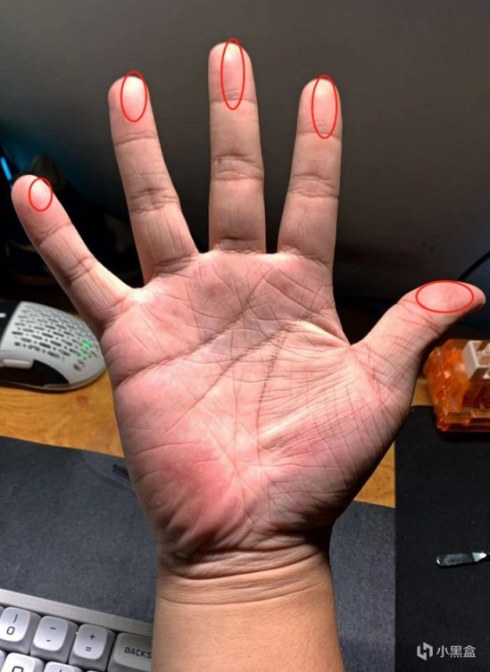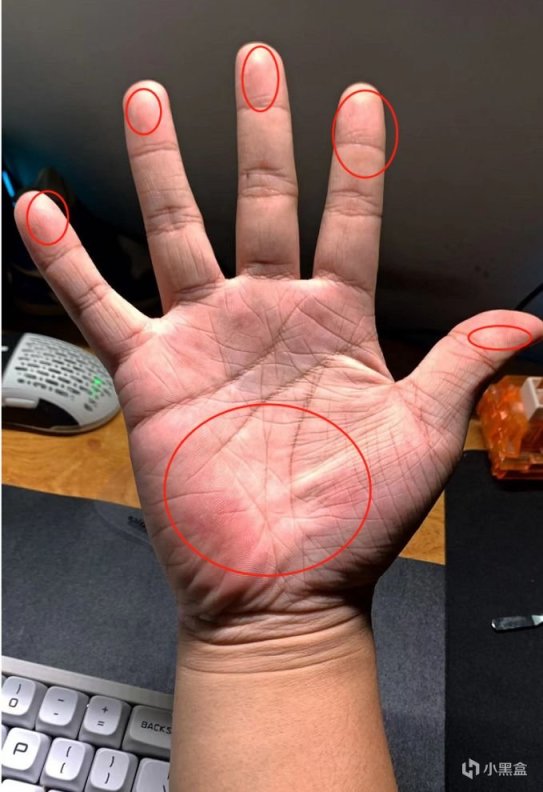 接觸點:指尖加上指根對應的手掌位置