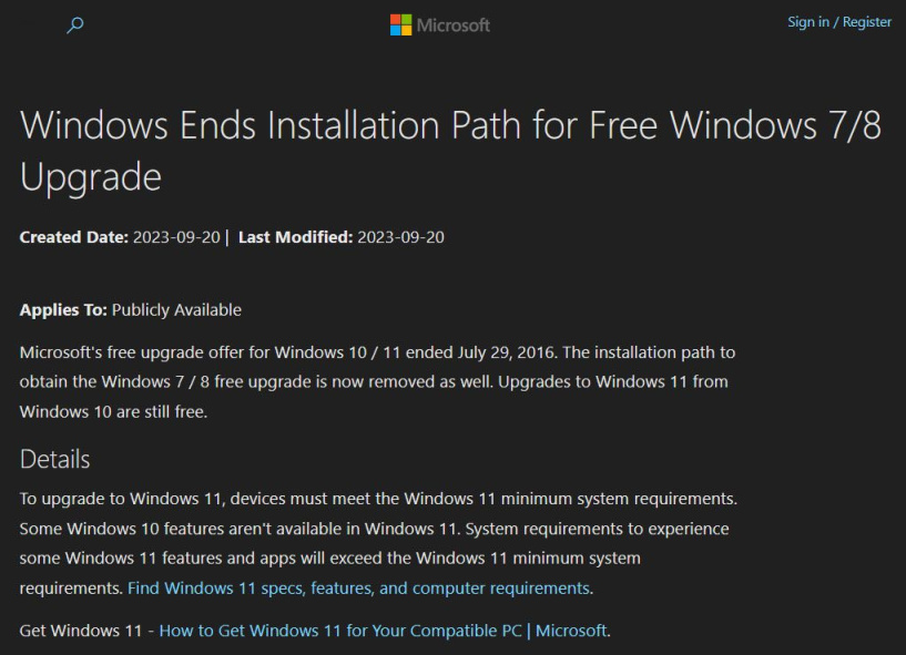 微软宣布已经关闭了允许 Windows 7 和 8.X 用户免费升级到 Windows 10 和 11 的通道。