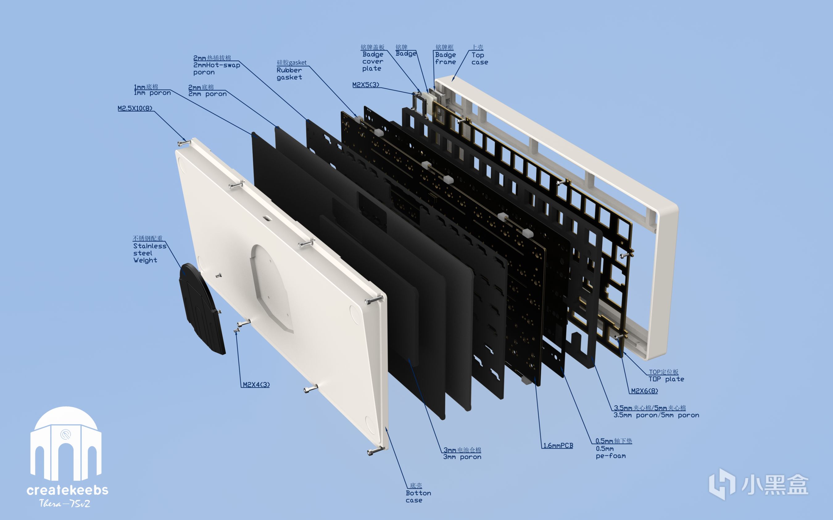 這款是Thera 75的續作,同樣爲75配列,其最大的亮點是右上角的銘牌可改爲船舵型旋鈕以及其內部可以組裝成無鋼結構增加其手感。這個老闆沒有列表寫設計理念,所以就直接看外觀。