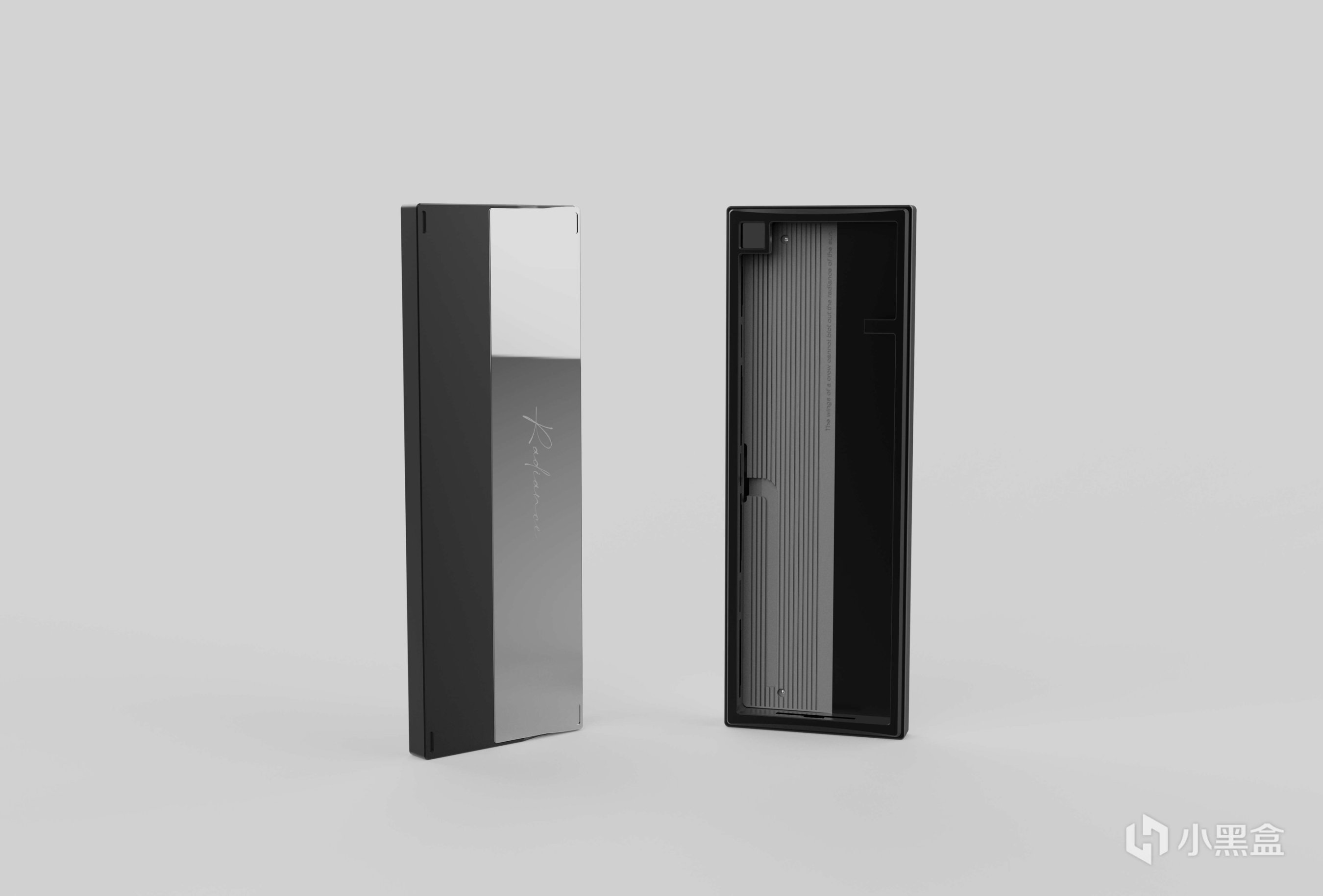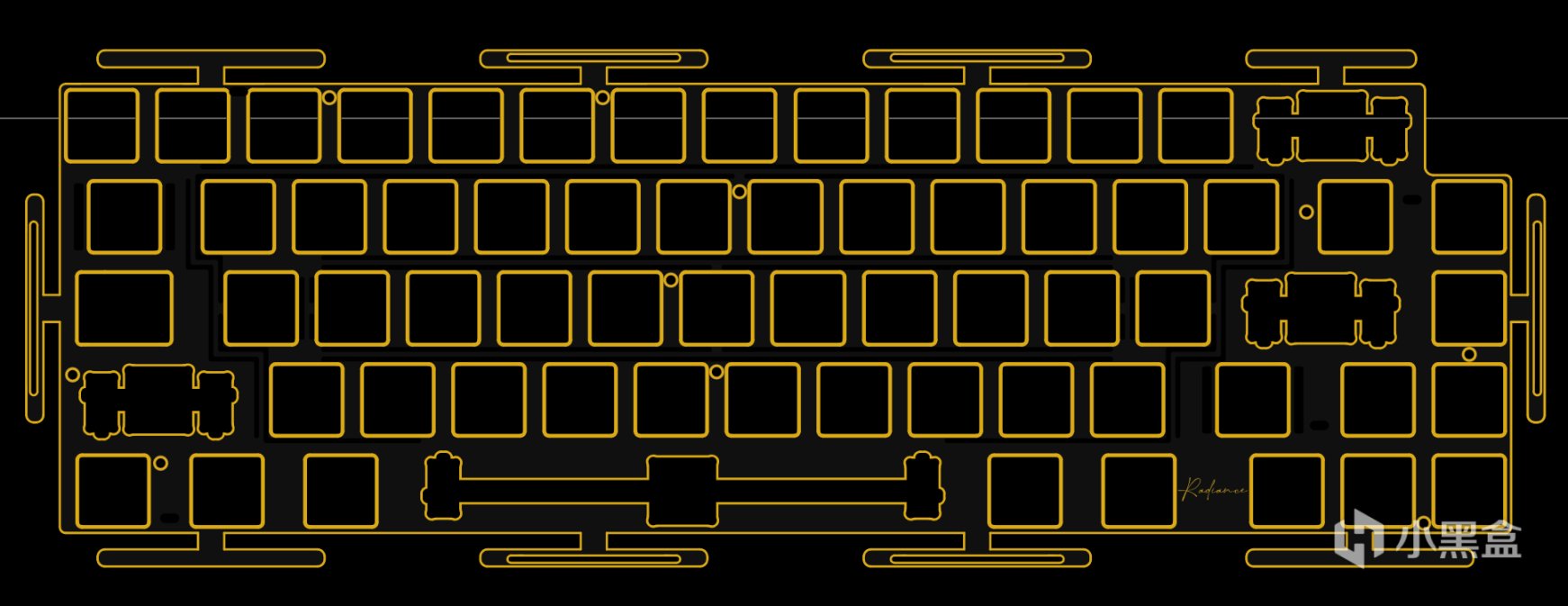 上殼:首先我們認爲一把的鍵盤應當在正面就具有辨識度,我們通過嘗試在正面放入了一枚1u大小的屏幕同時保持了邊框的協調,對邊框進行了曲線設計,優化正面觀感,也降低了前高。