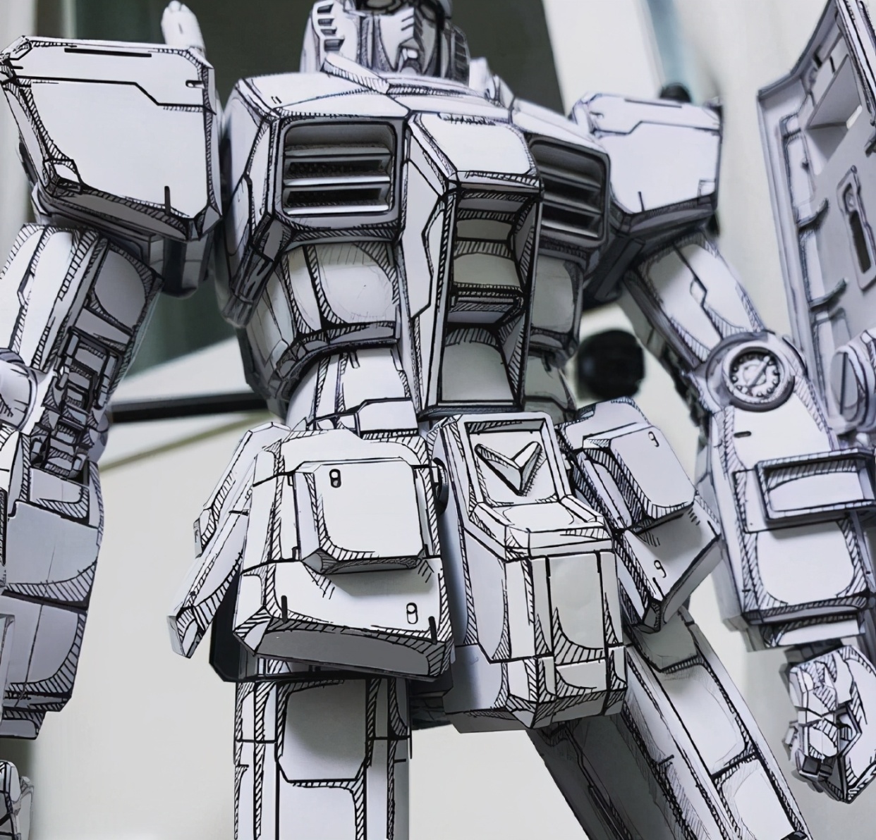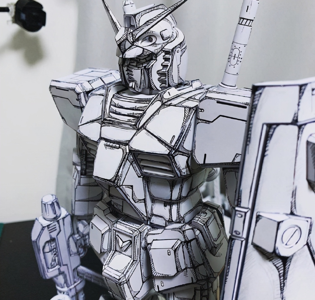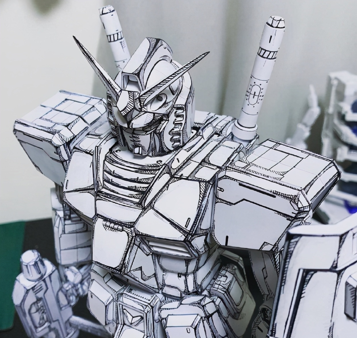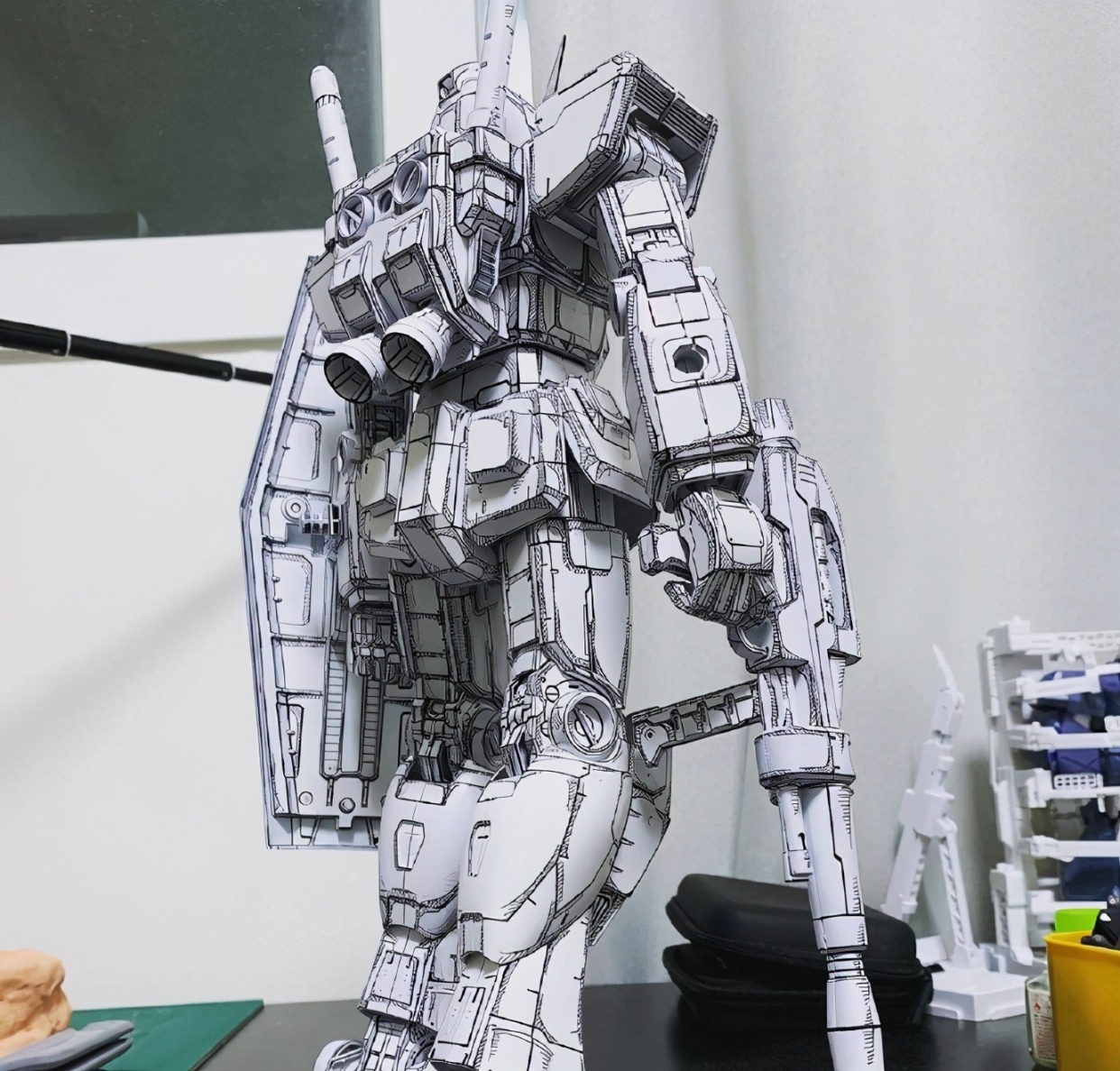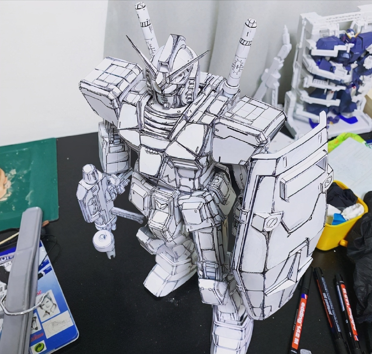 为了能使铅笔勾勒出二次元的细节,模友将整款高达模型进行了白色重涂,换成白色之后再用铅笔进行笔涂,这样就能突出铅笔的着色,然后按照之前设计好的二次元纹路进行笔涂,最后就为大家呈现除了二次元风格的78高达模型了。