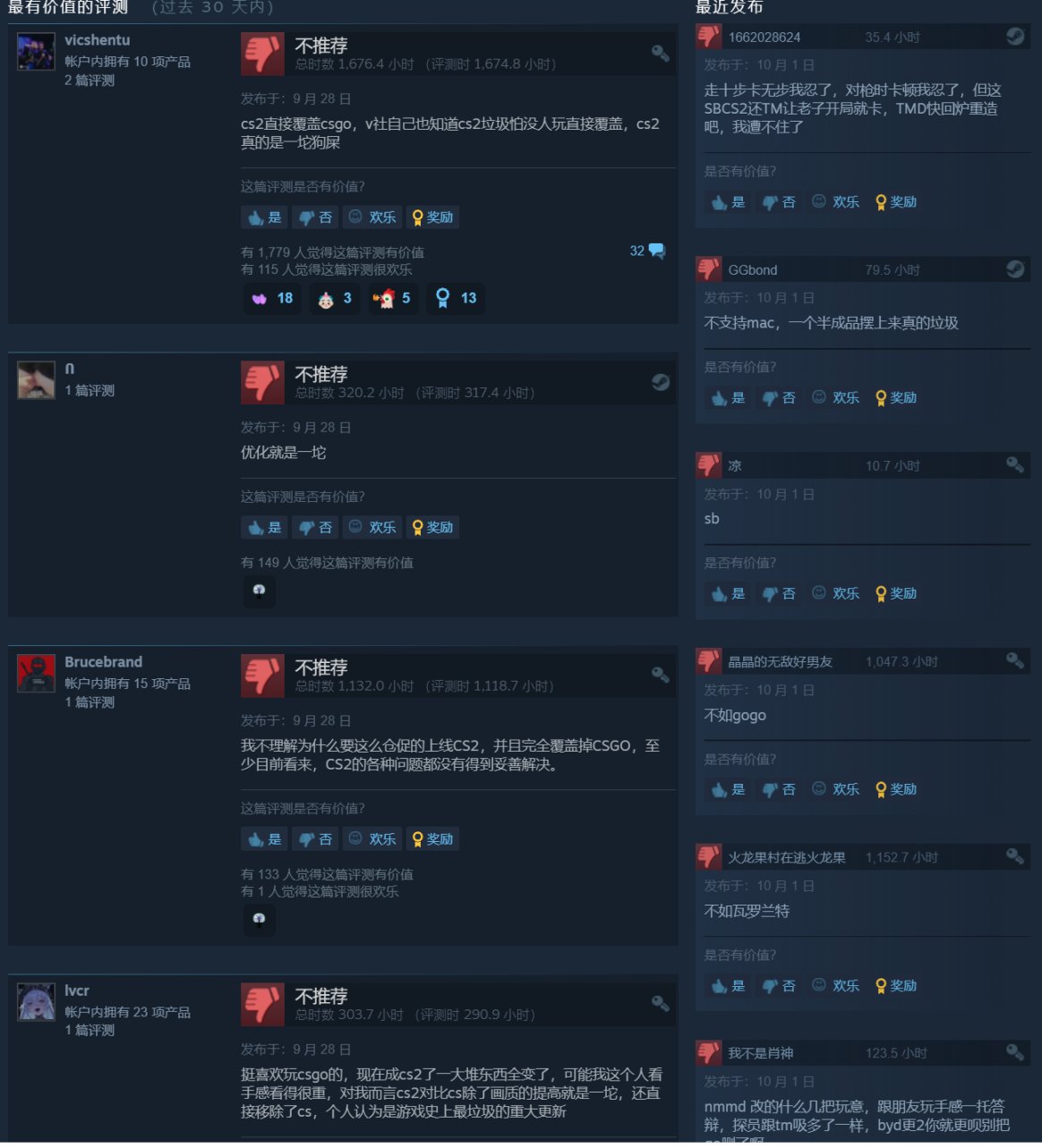 但是正式上线后的CS2并没有获得大部分玩家的认可,在正式上线后CS2在Steam收到了大量的差评,好评率也相比之前下降了一点