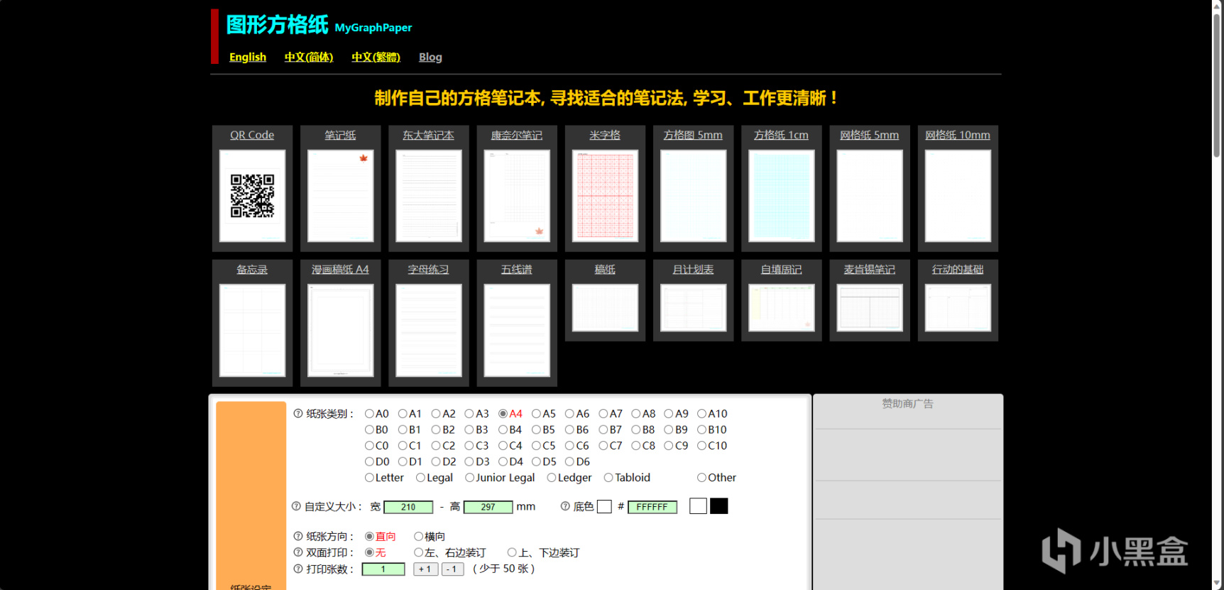 制作不同类型的纸张文件,如笔记本、方格本、字母本等,可以设定纸张大小、底色等参数