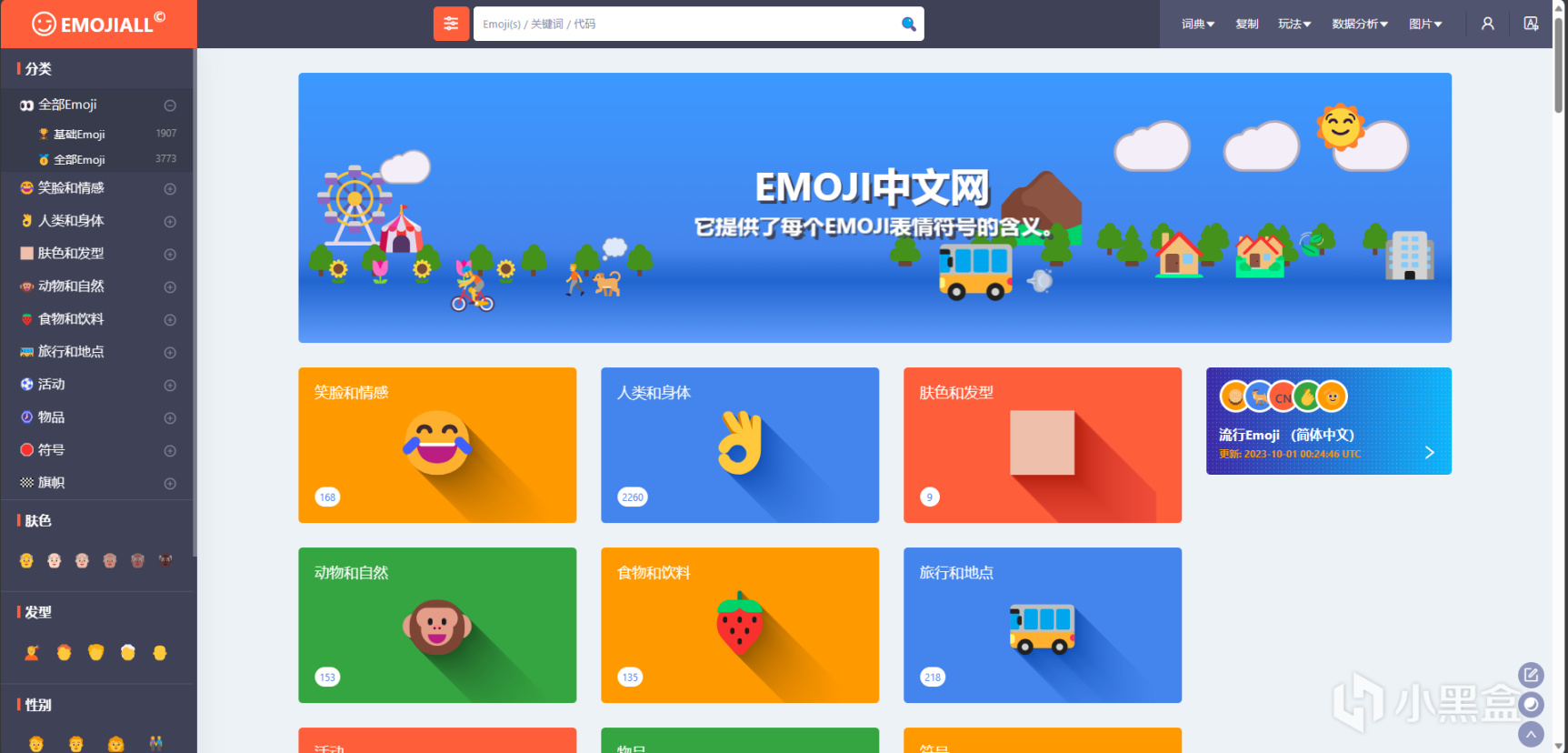 该网站提供了最新、完整的 Emoji 搜索和相关信息,还有图表可视化展示热门 Emoji、Emoji 小游戏等