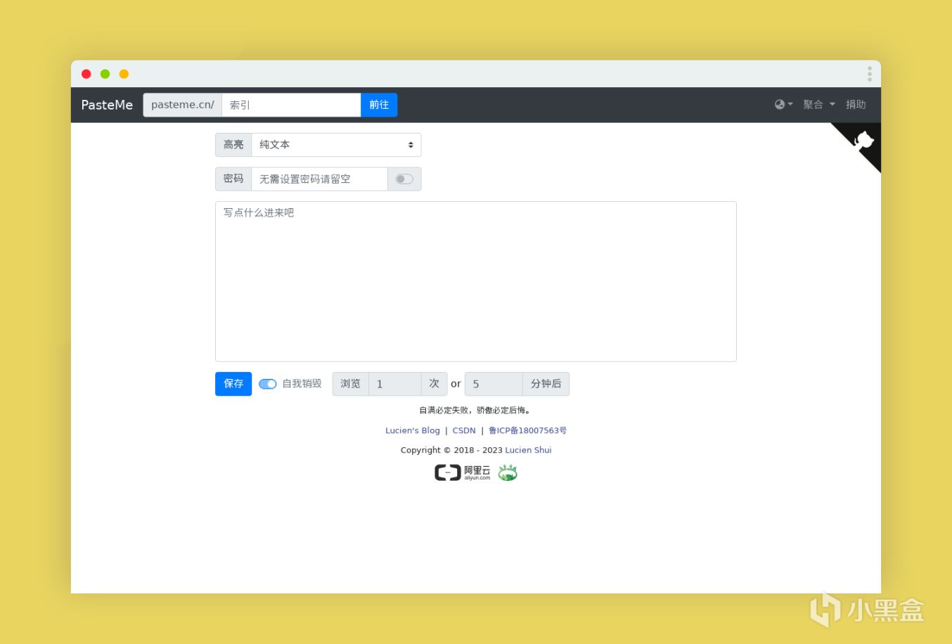 一个可私有的文本分享平台,可以选择代码,支持代码高亮、密码保护、阅后即焚。非常实用程序员用来分享了。但是既然都是程序员了,为什么不用git呢