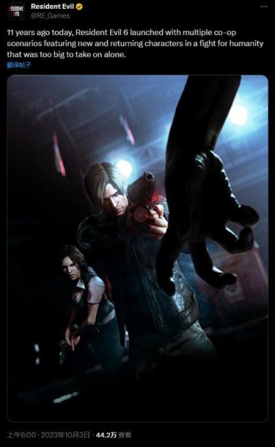 《生化危机》官方今日发图,庆祝《生化危机6》发布11周年。