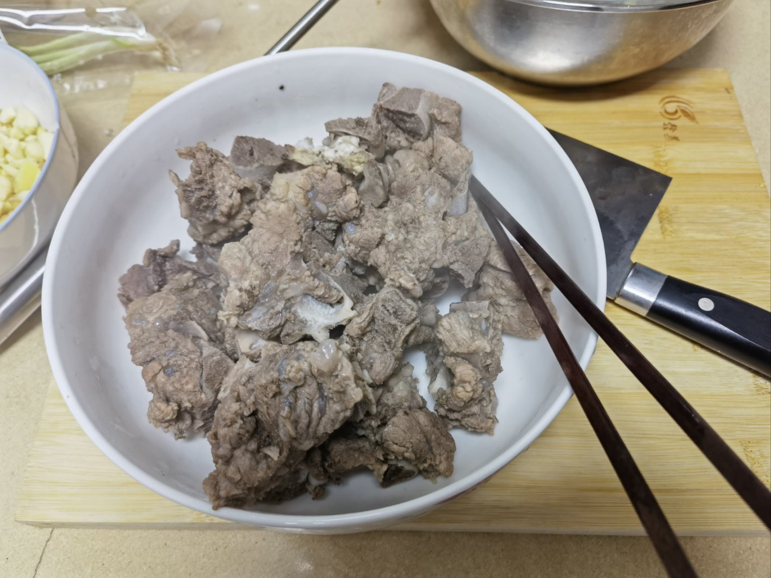 开热水直接冲洗排骨,冲洗干净后捞出排骨(这一步主要为了去腥,如果买的排骨新鲜的话可以不用这样冲洗,直接继续煮);