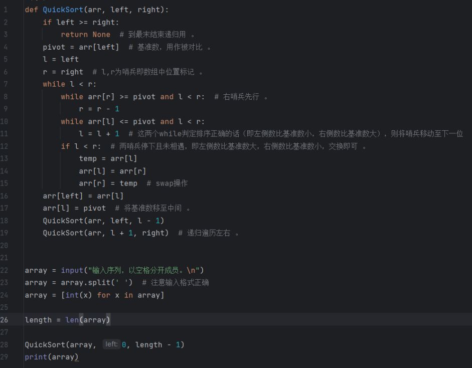 哨兵left移动后到达比基准数大的数位置,可能该位置后的还有一个数大于这个基准数,但left已经无法移动。