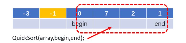 其中array为待排序序列(数组),begin(begin = left + 1)是array中要排序的起始位置,end是结束位置。