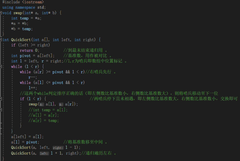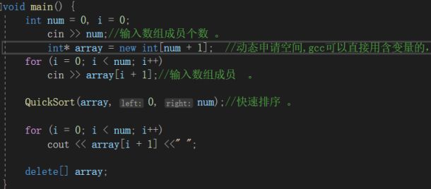 我们快速排序的函数是QuickSort(array[],begin,end);