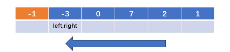 我们移动到-3处,发现 -1 > -3,不符合我们之前的条件,所以我们让哨兵right停下。