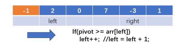 首元素为 -1 , -1 = -1,符合条件(条件:arr[left] <= pivot),现在左哨兵继续左移。