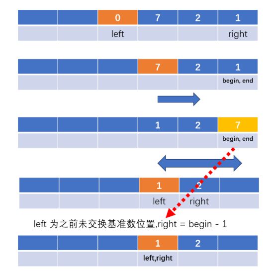 - 橙色为排序的基准数 绿色为交换后的基准数位置