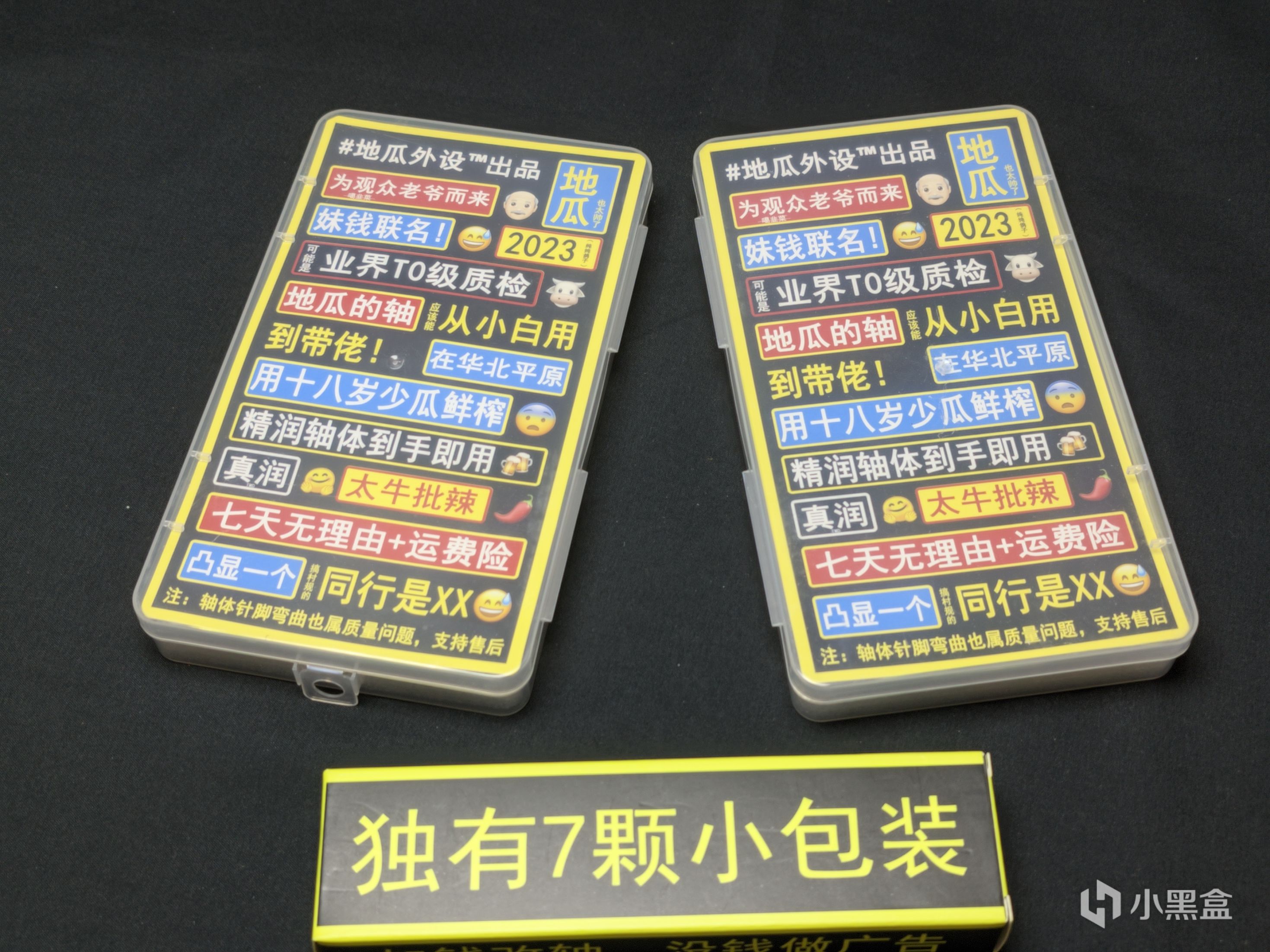 最後就是本期文章裏最貴的雲炬紅軸了,這也是本期文章裏唯一一款採用盒裝的軸體。相信不少盒友看到地瓜這倆字就想到我上一期鯊掉線靜軸的文章,沒錯,包裝依舊採用的地瓜經典包裝,多說無益,直接上圖就能體會到我想表達的意思。
