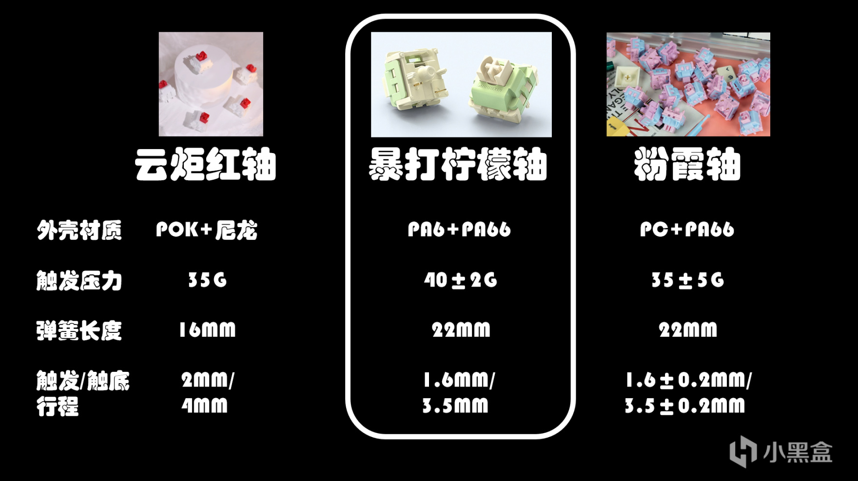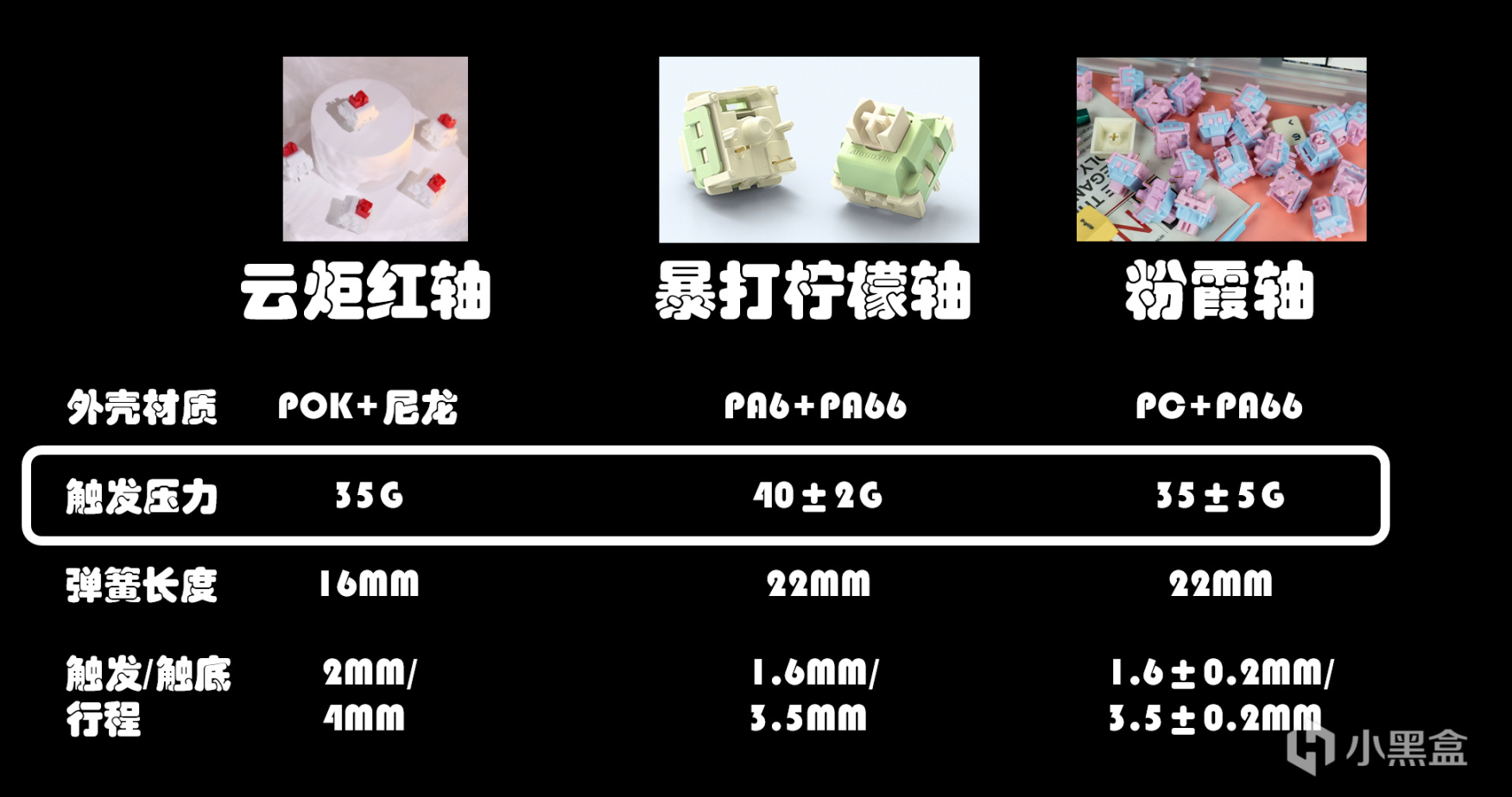 其他兩款軸體的觸發壓力均爲35gf左右,相較於暴打檸檬軸來說,手感上會更加輕盈一些,更適合長時間碼字的用戶。