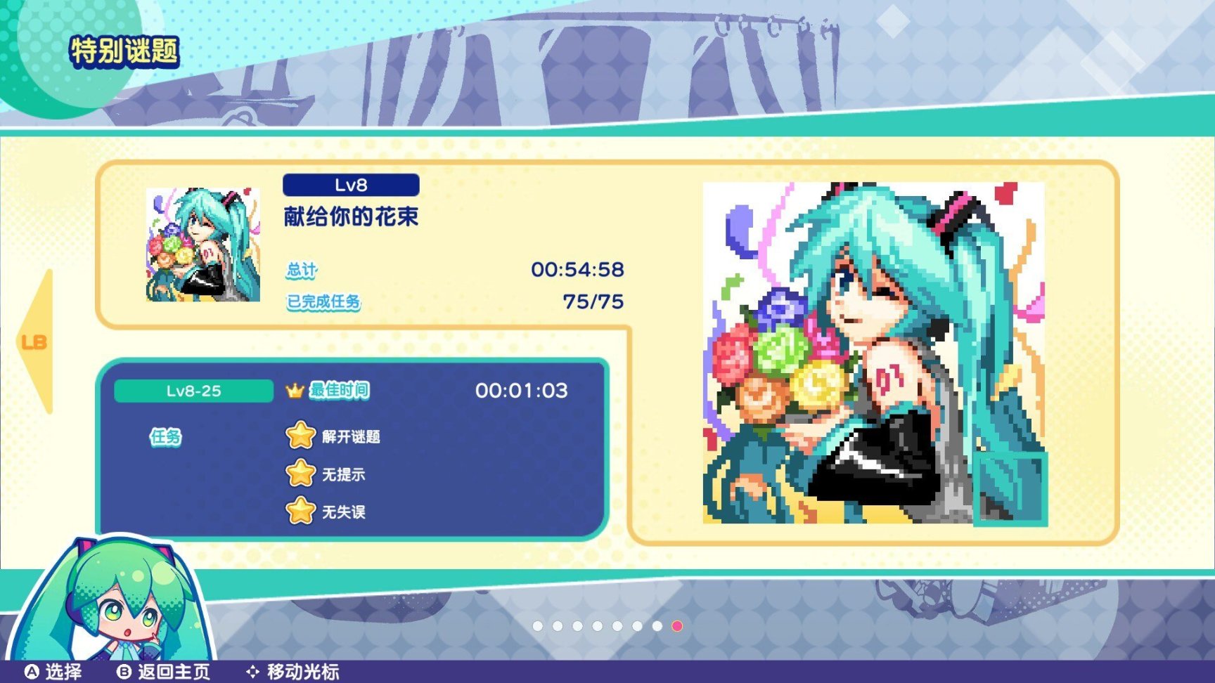 数织的话如果不是初音未来我还真不会去玩这款游戏,以前也没了解过数织,但去玩了还真挺上头,一下子就玩了好久,之后每次打完一款游戏就拿出来玩一会,慢慢地就把所有图都打完了。