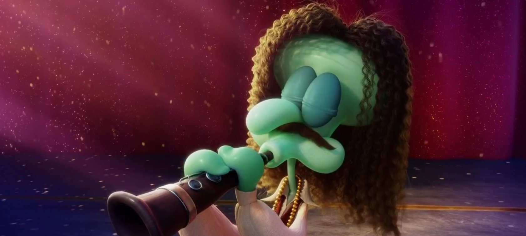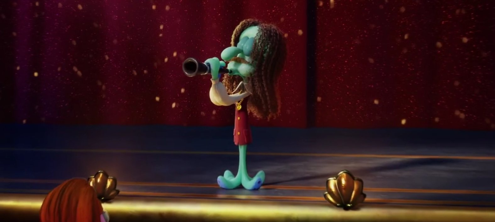 这位音乐家在TV版也出现过,如果熟悉爵士乐的好兄弟应该认得出来这个名字致敬的正是,萨克斯之父、肯尼·基,也被人译为凯丽金,而电影中演奏的音乐名叫《Squiddy G》,而肯尼·基的英文名正是“Kenny G”。