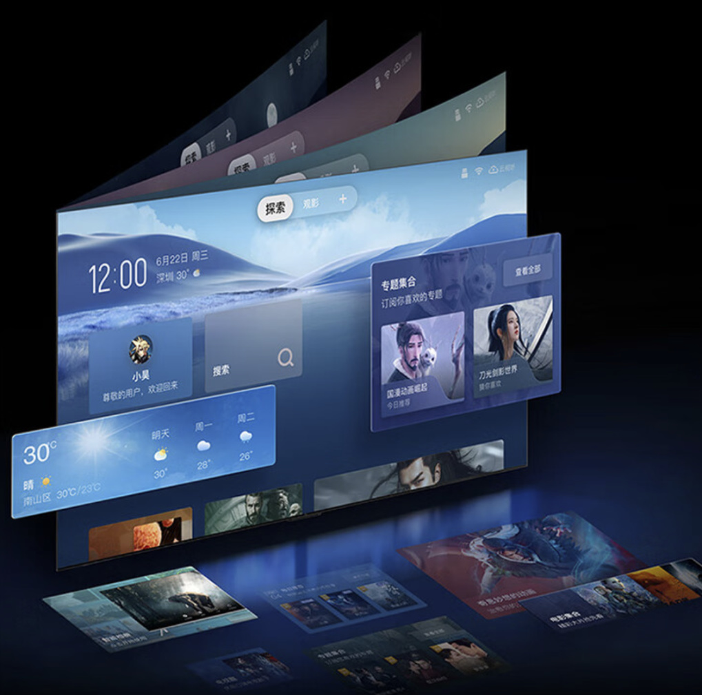 其次,在硬件配置如此内卷的当下,选购电视需要考虑实际使用体验,比如软件层面的优化,雷鸟和TCL在操作系统方面优势非常明显,无广告+软件易用,家中老幼都能使用。