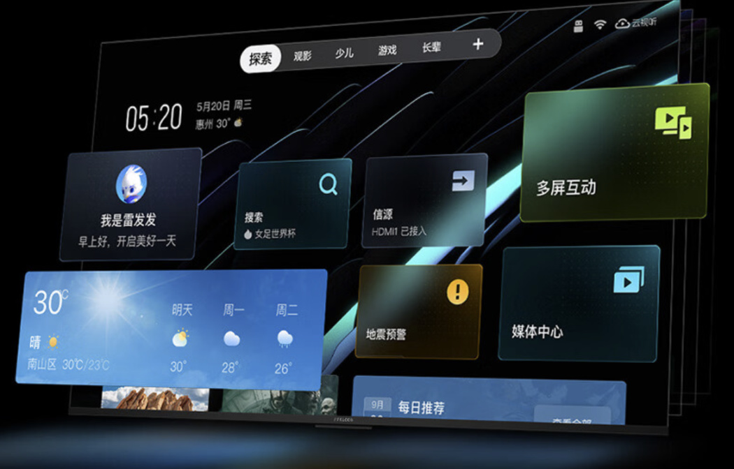 TXL 98T7E同样支持灵控桌面,开机无广告,0.7秒开机,基本业内最好用的电视系统了,反应灵敏,交互简单,老人小孩都能用,TCL在这块确实用心了。