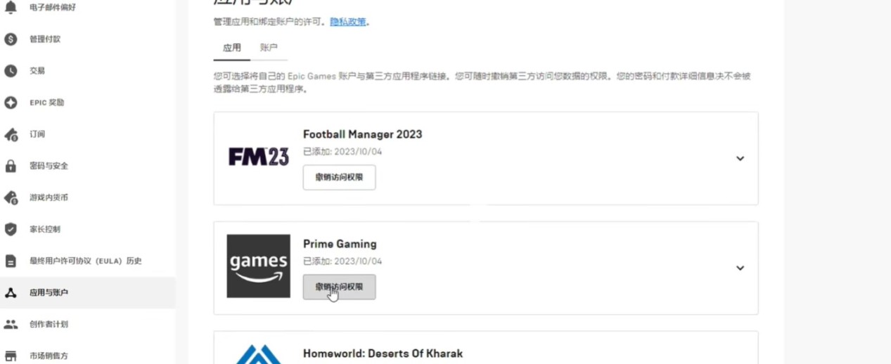 6.如果是代领或者非本人亚马逊账号,可以在epic的“账号”中选择解绑。