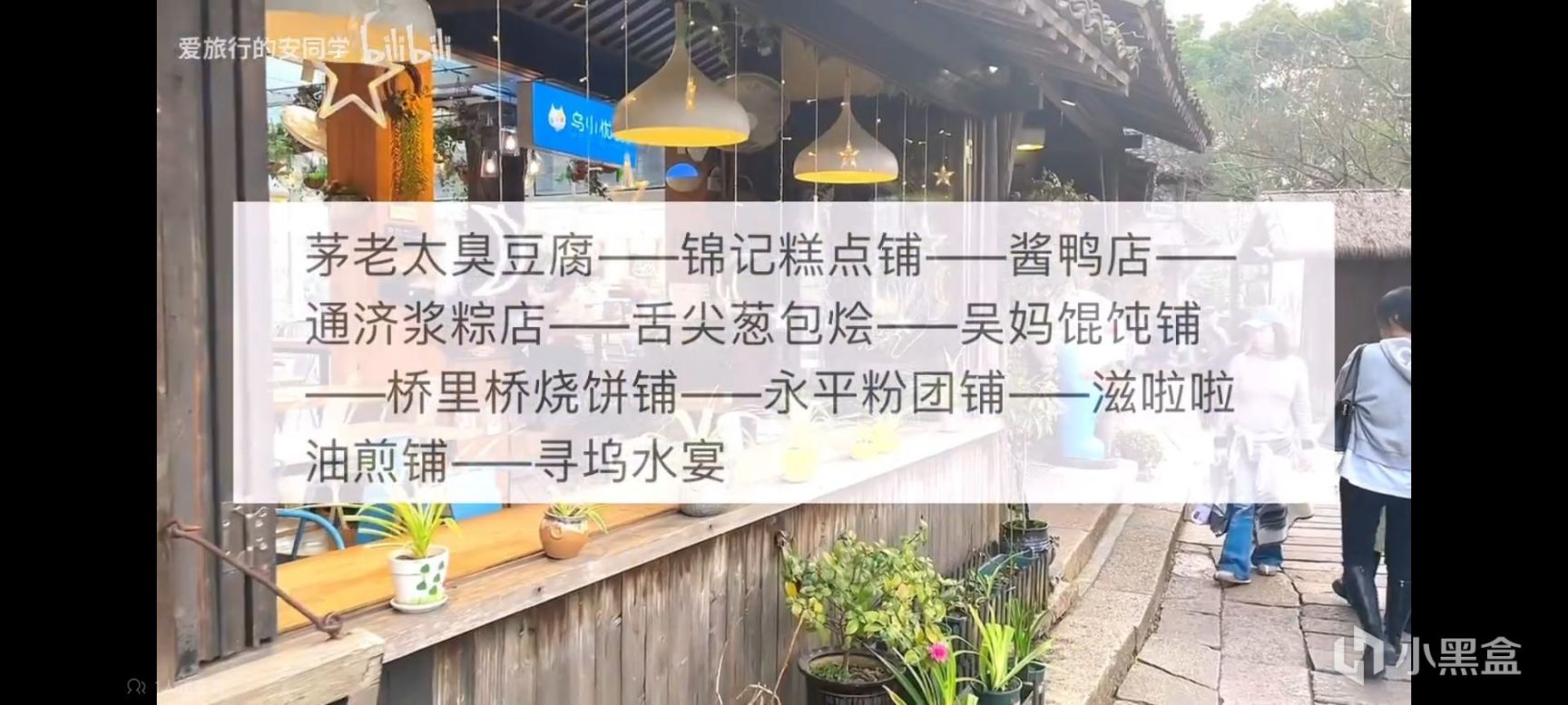 茅老太臭豆腐 一 锦记糕点铺 一 酱鸭店 一 通济浆粽店 一 舌尖葱包烩 — 吴妈馄饨铺 一 桥里桥烧饼铺 一 永平粉团铺 — 滋啦啦油煎铺 一 寻坞水宴