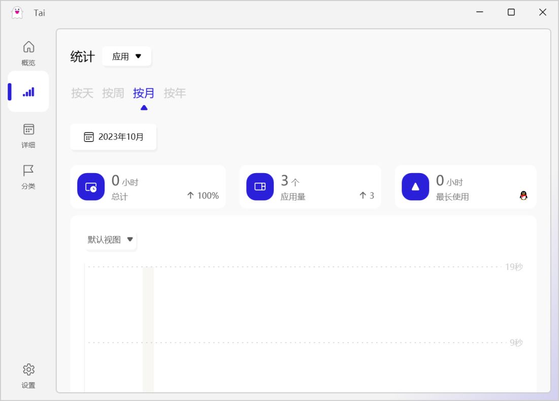 双击 Tai 的 Logo 打开主界面,就能看到自从 Tai 第一次打开之后,记录下的软件使用时间信息。