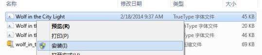 如果字体文件是压缩文件,右键单击 .zip 文件夹,然后单击“解压缩”,可将其解压缩。现在,将看到可用的 TrueType 和 OpenType 字体文件:
