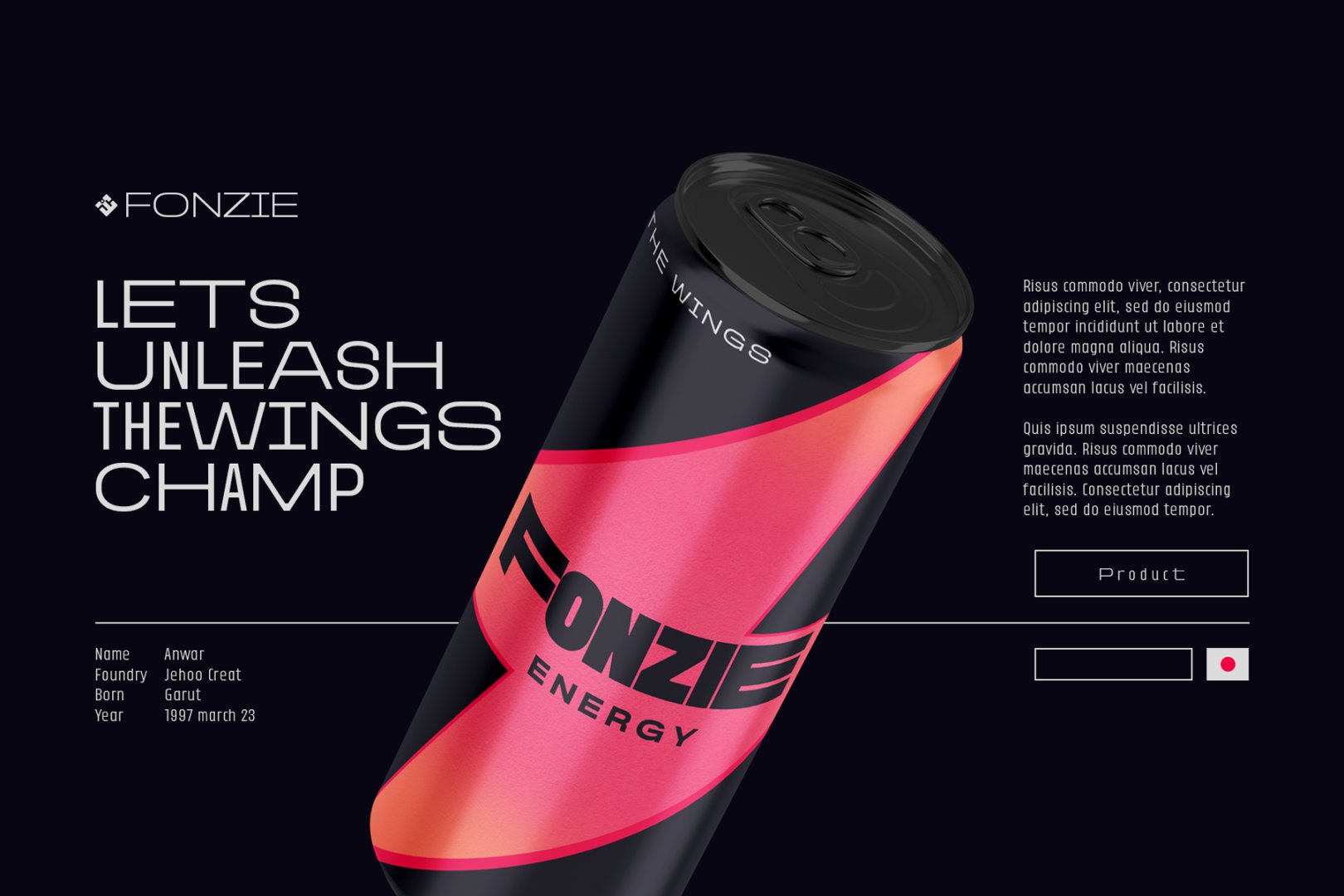 本次的素材是来自Fonzie系列的字体,字体设计实现了传统与创新之间的完美平衡。Fonzie的基本风格体现了永恒的优雅、节省空间的简洁形式和现代风格。