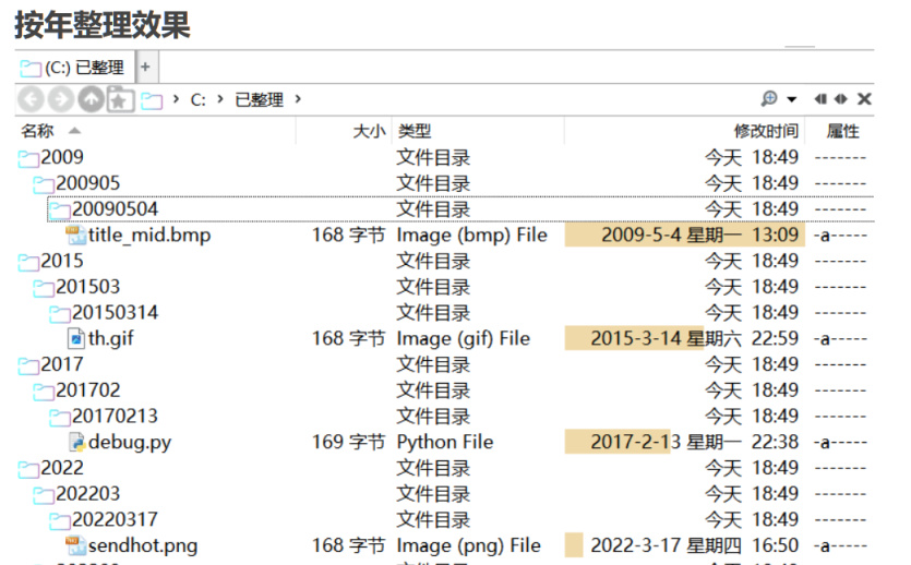 點擊整理之後,就會按照對應的格式來生成文件夾並將文件丟進去,這樣能很方便地查看那些時間距離較遠的文件,而有文件歸檔需求的朋友,像是一些文書電子檔、活動策劃文件、信息收集的存檔,根據實際情況按時間保存或許更加方便,用上“文件整理助手”能一鍵完成,節省大量篩選目錄的時間。