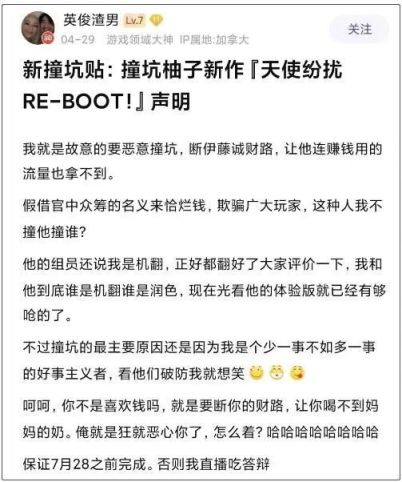 不清楚英俊与某汉化组有什么矛盾,不做评价