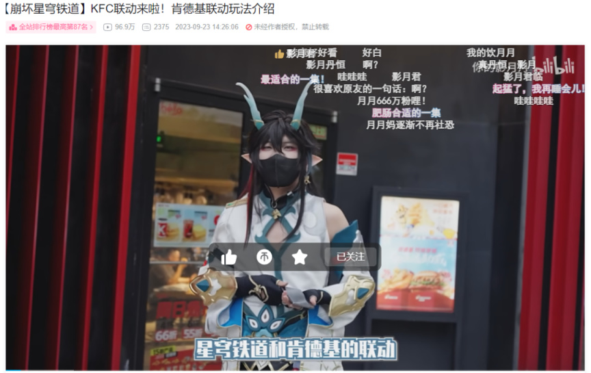 。活動開始後,《星穹鐵道》和KFC按節奏放出多個視頻,整活兒積極且貼合自身調性。