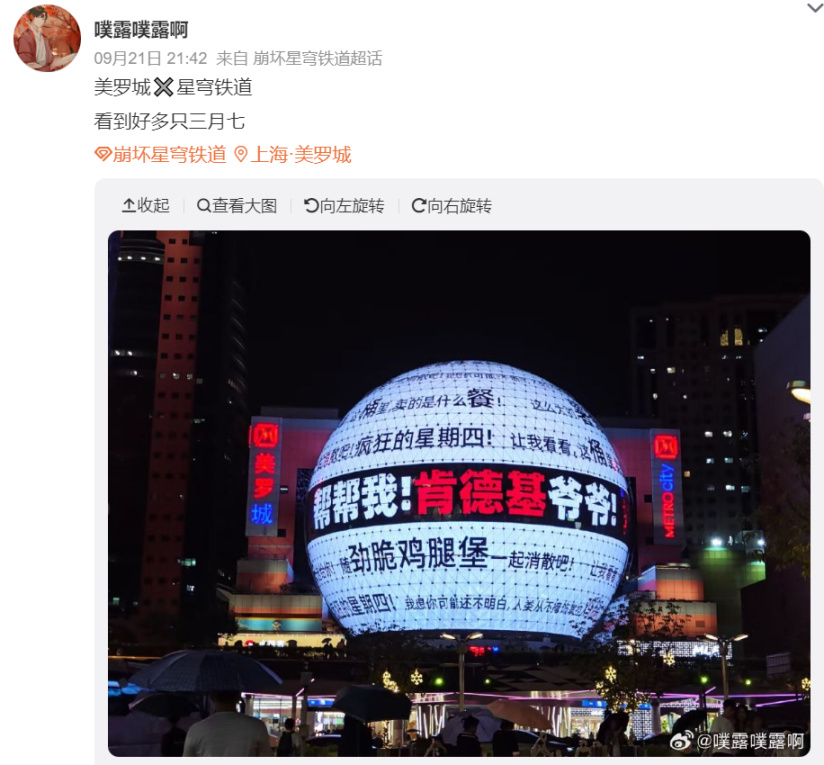 這是《崩壞:星穹鐵道》和KFC的聯動活動上線首日的場面。