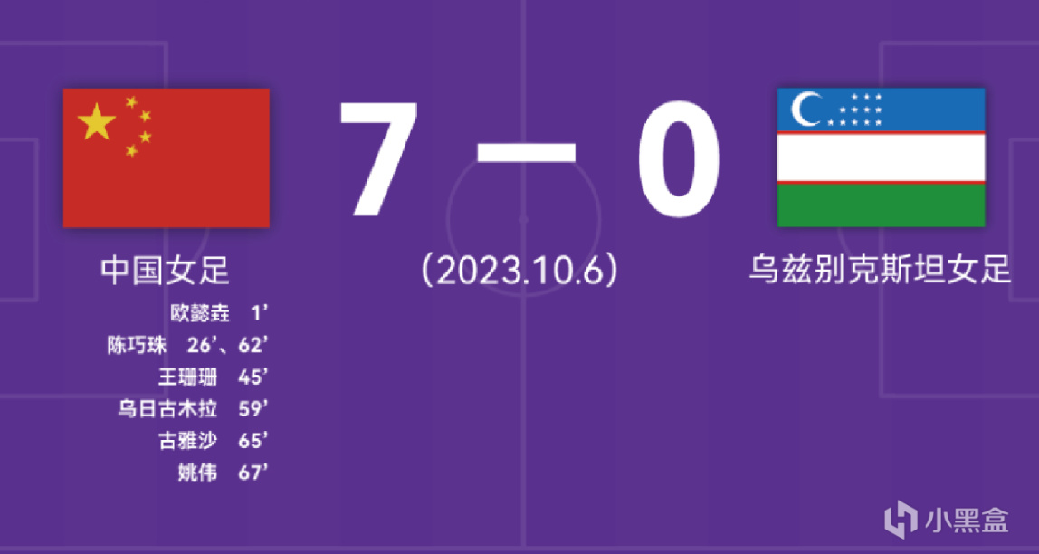 下半场,乌日古木拉头球建功,陈巧珠头球完成双响,古雅沙替补破门,姚伟抽射扩大比分,最终中国女足7比0大胜乌兹别克斯坦女足,取得杭州亚运会铜牌!