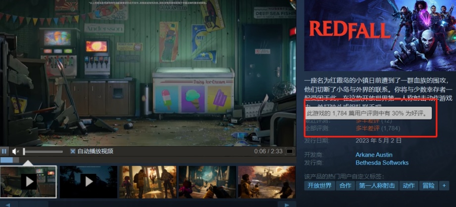 由 Arkane Austin 制作、Bethesda 发行的开放世界第一人称合作射击游戏《红霞岛》,在发售不到半年的时间里,游戏每天的在线玩家下降到 30 人左右: