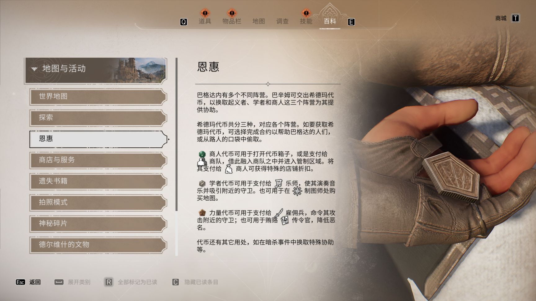 首先是本作新加入的希德玛代币系统,他们各自有着自己不同的用途,比如学者代币可以雇佣乐师吸引士兵,力量代币可以让雇佣兵与士兵发生冲突,商人代币可以换取潜入机会等,这本来是一个很有意思也可以增加游戏深度的设计,但不知道是ai的问题还是育碧根本就是预设了一些数据,导致这个系统的体验感大打折扣。