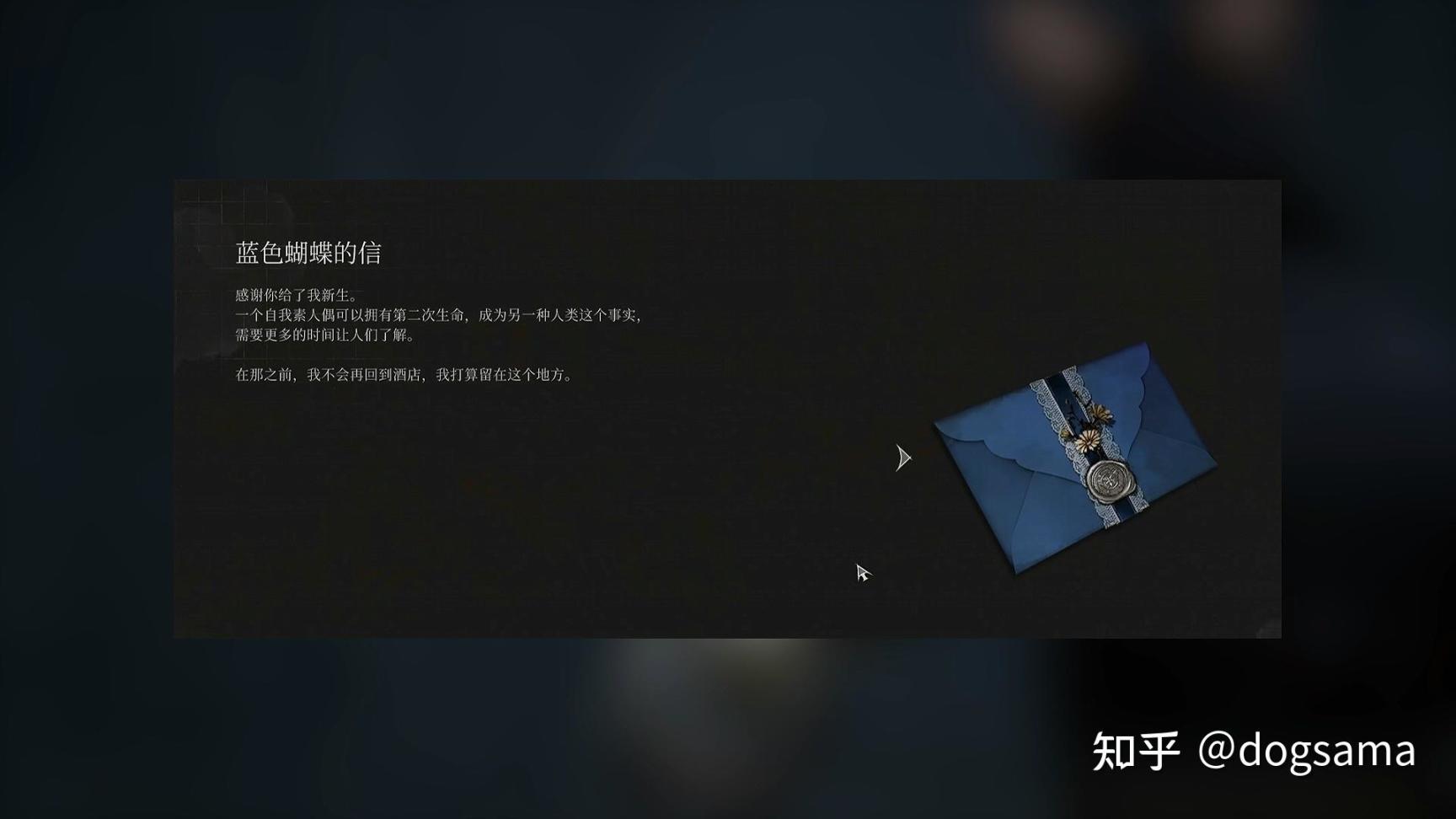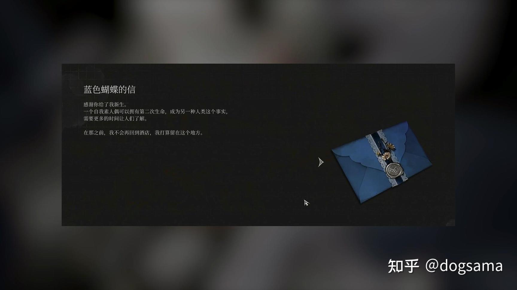 这个结局里,你会在酒店里发现索菲亚给你寄来的蓝色蝴蝶的信,上面写道:“感谢你给了我新生。一个自我素人偶可以拥有第二次生命,成为另一种人类这个事实,需要更多的时间让人们了解。”