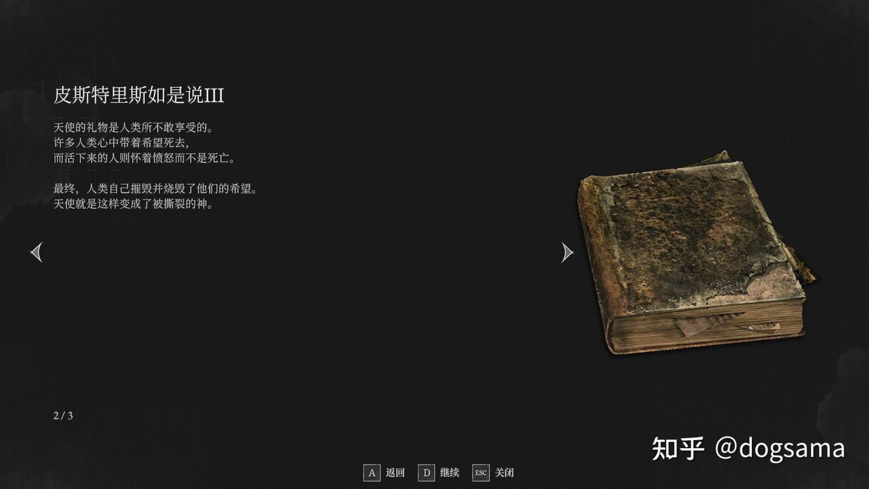于是你会看到这样的话:“最终,人类自己摧毁并烧毁了他们的希望。天使就是这样变成了被撕裂的神。但现在,肯定有带着祝福存活下来的人。他们,不死之人,仍然四处漫步希望神的复活。我明确地诉说了我所见证的真相。现在你们都应遵循这条道路。“