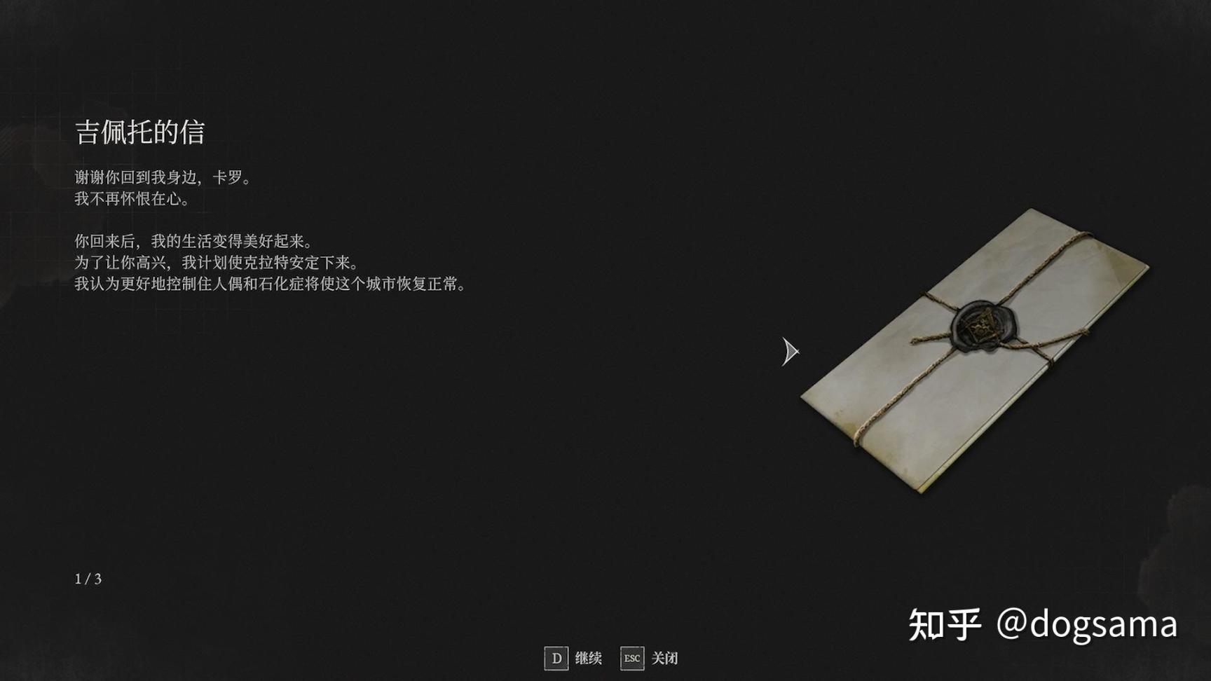 在此刻我们是不清楚这个行为究竟有什么含义的,直到你得到了吉佩托的信,上面写道:“你回来后,我的生活变得美好起来。为了让你高兴,我计划使克拉特安定下来。我认为能更好地控制住人偶和石化症将使这个城市恢复正常。再也不会有人阻碍我们了。我将为你重建克拉特。”