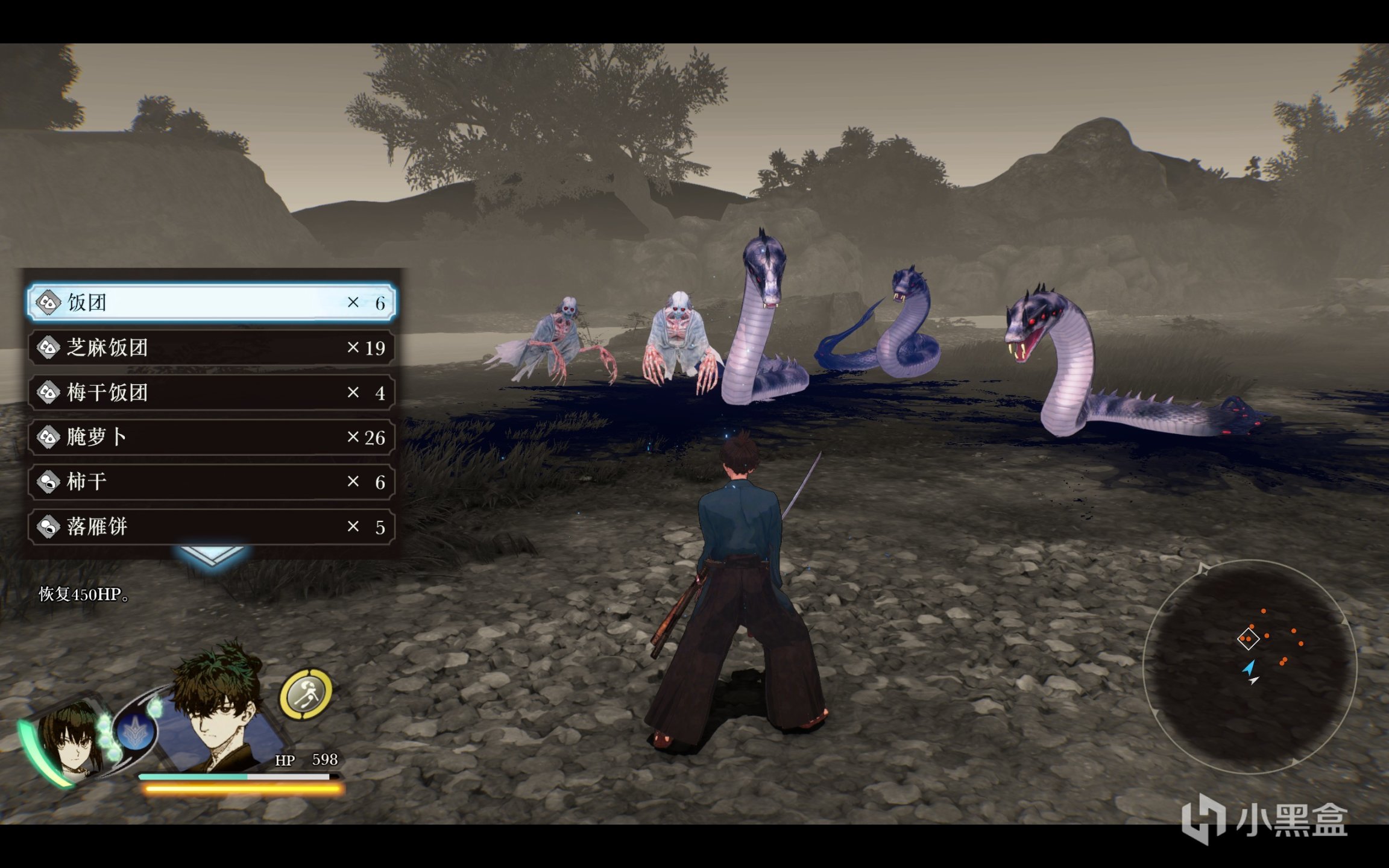 而另一个值得一提的细节是,制作组生怕玩家不能在上面的情况下爽到,完全是一个动作游戏小白,于是在游戏中还贴心地加入了暂停选择技能,暂停更换自己的攻击形式,暂停使用自己的魔法,甚至是暂停吃药的设计,只要玩家怀里的饭团够多,也就意味着玩家是一个不会死去的不败战神。