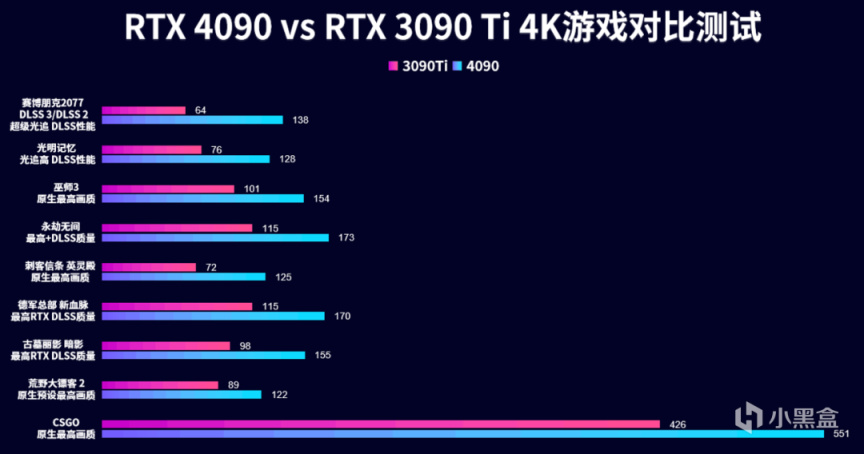 传统光栅游戏相比RTX 3090 Ti性能提升幅度也很明显,FPS帧数最高可提升45-65%左右。