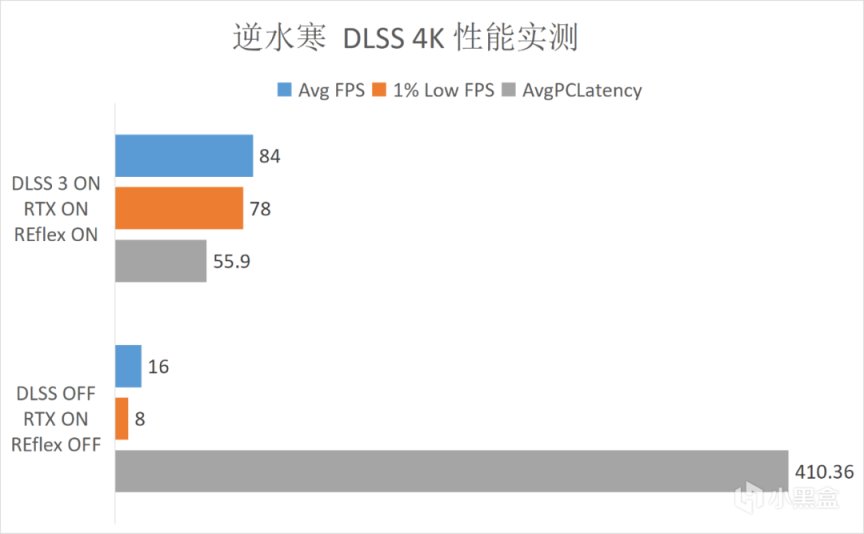 逆水寒未开启DLSS 3时帧数只有16FPS左右,开启后帧数提升了5倍左右达到84FPS。