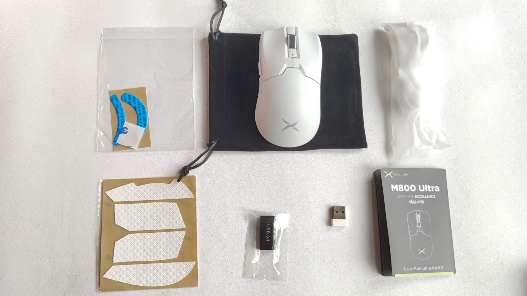 这是我第一只M800PRO3395的外包装,白色的鼠标本体,配了个黑色彩喷图的包装,说真的,我当时的第一反应就是,这真的是我在2023年买到的200块鼠标的包装吗?