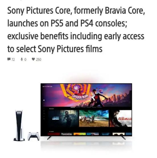 索尼将在PS4/PS5上推出「Sony Pictures Core」(原名:Bravia Core)应用程序,用户可以直接在PS4/PS5观看或租赁《蜘蛛侠:平行宇宙》《蜘蛛侠:英雄远征》《神秘海域》《伸冤人》等2000部影片,并且还可以在独家抢先体验窗口中购买机购买精选的 Sony Pictures 电影。