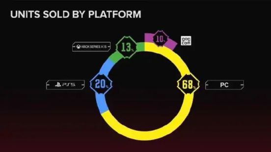 销量方面,《赛博朋克 2077:往日之影》DLC 首周销量为300万份。平台分布为 PC (68%)、PS5(20%)、Xbox (13%),在分布上,主要地区为北美(35.9%)、欧洲(35.1%)、亚洲(23.1%)。《赛博朋克 2077》本体全球累计销量现已达到2500万份!