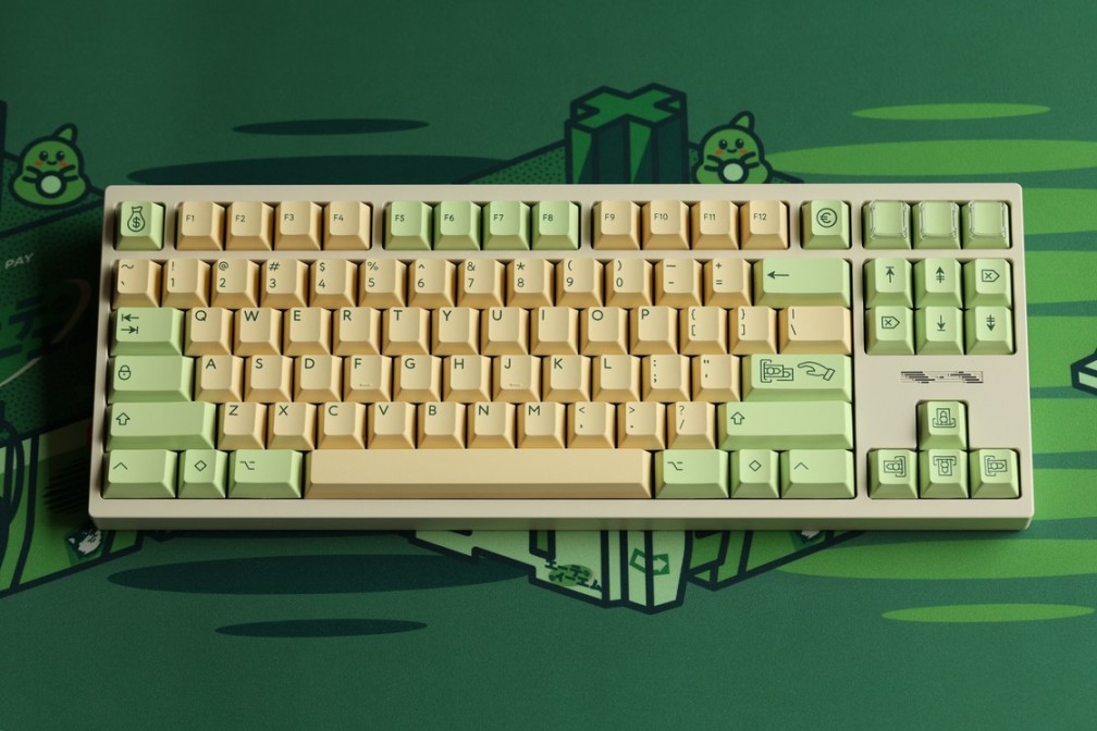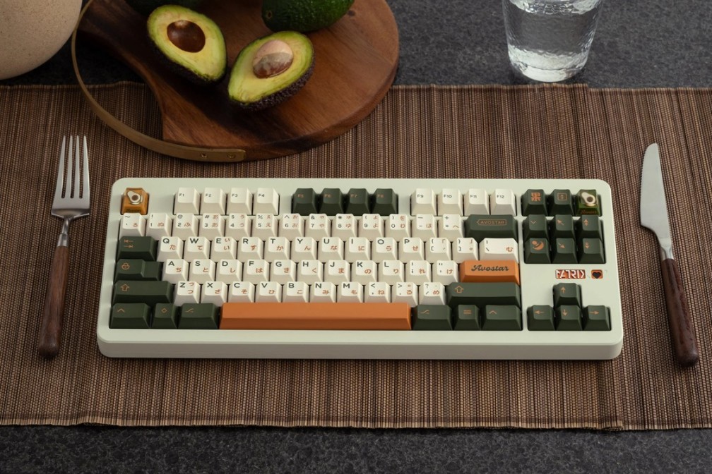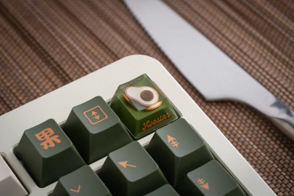 鱷梨星是我很喜歡的一套鍵帽,異想天開的設計思路,深沉的墨綠帶有橙色的點綴,很是耐看。