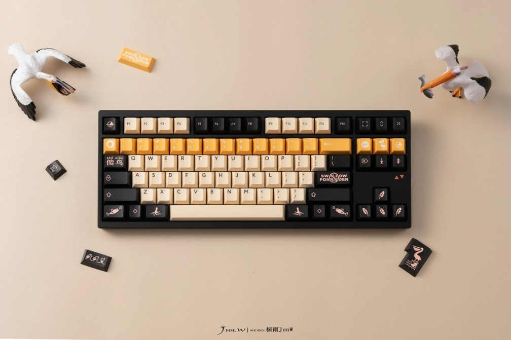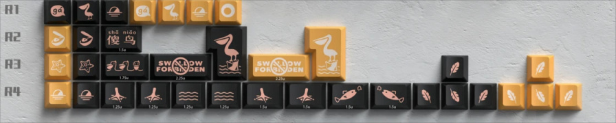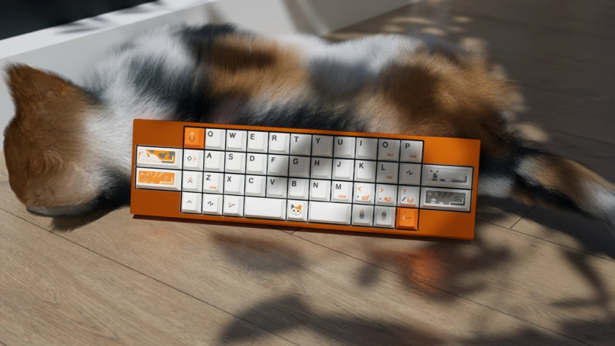 近期比較好的動物主題鍵帽,沒有乾淨簡潔且饒有趣味,有趣的圖案點綴修飾,以及橙色皮毛的融入做的相當不錯,但個性的按鍵分配多少有些過於抽象了,但當我看到作者的套件時,我突然明白了一切,他的按鍵佈局只能說相當炸裂了。