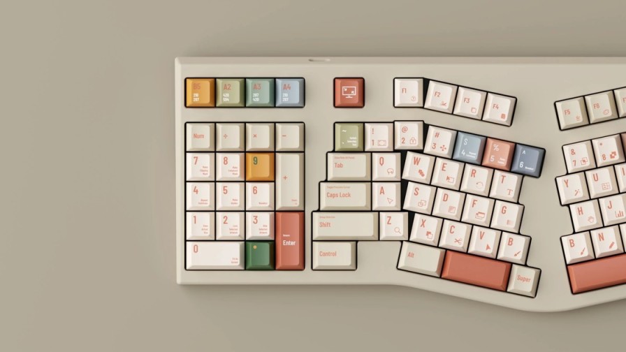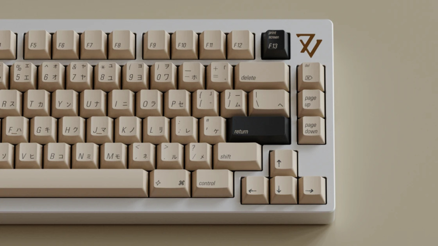 深灰色顯得沉穩和正式,而淡褐色則較爲中性順帶有一些發黃氧化的復古味,斜體小字體搭配多彩大鍵,簡約耐看。